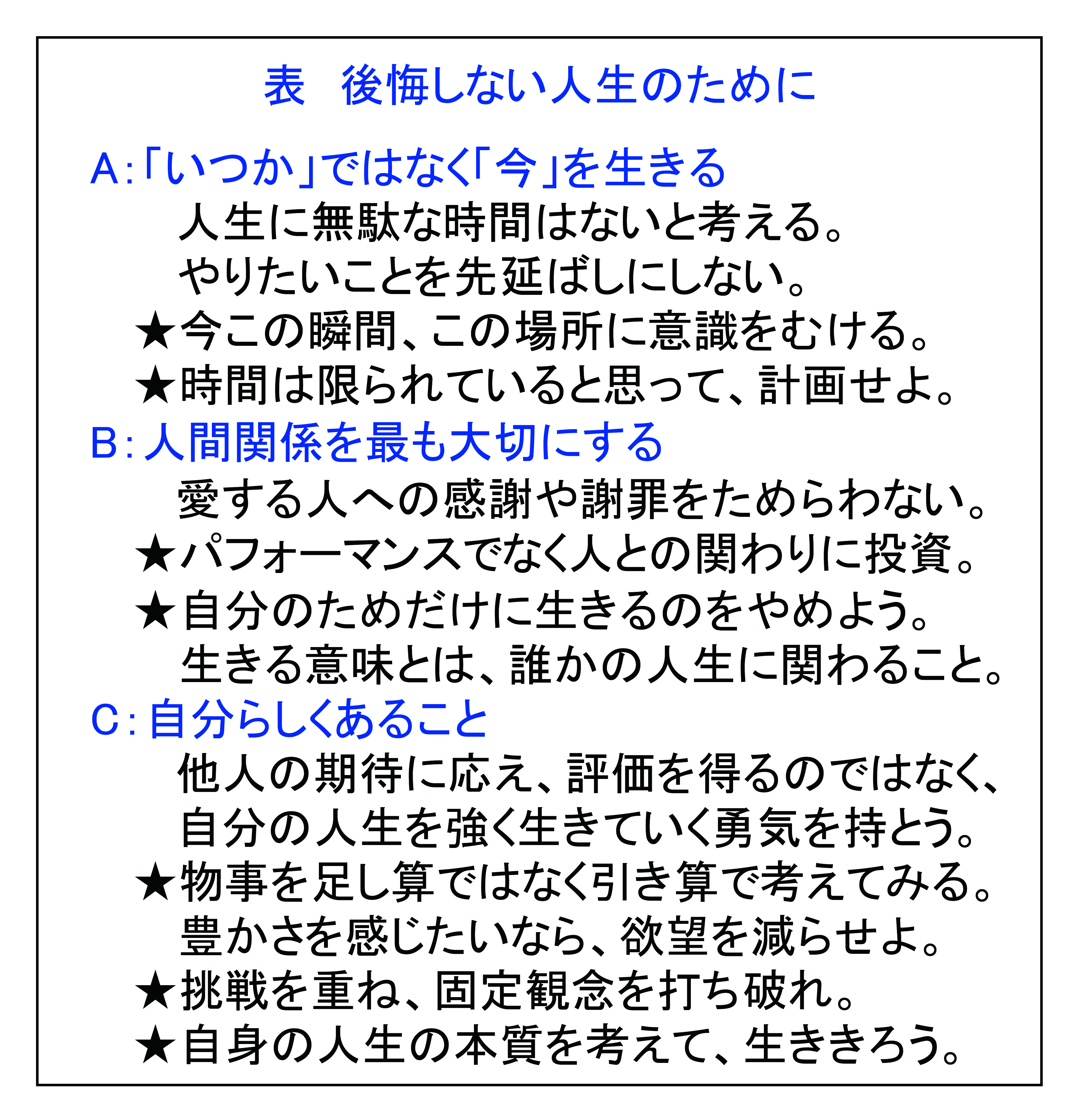<人生を 後悔しない 教訓は>