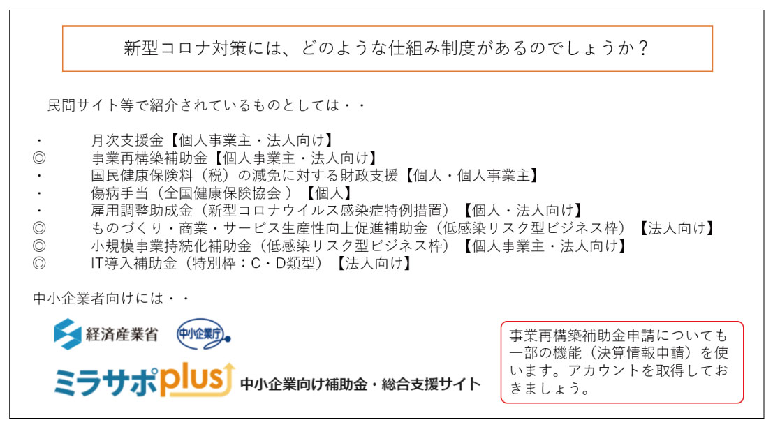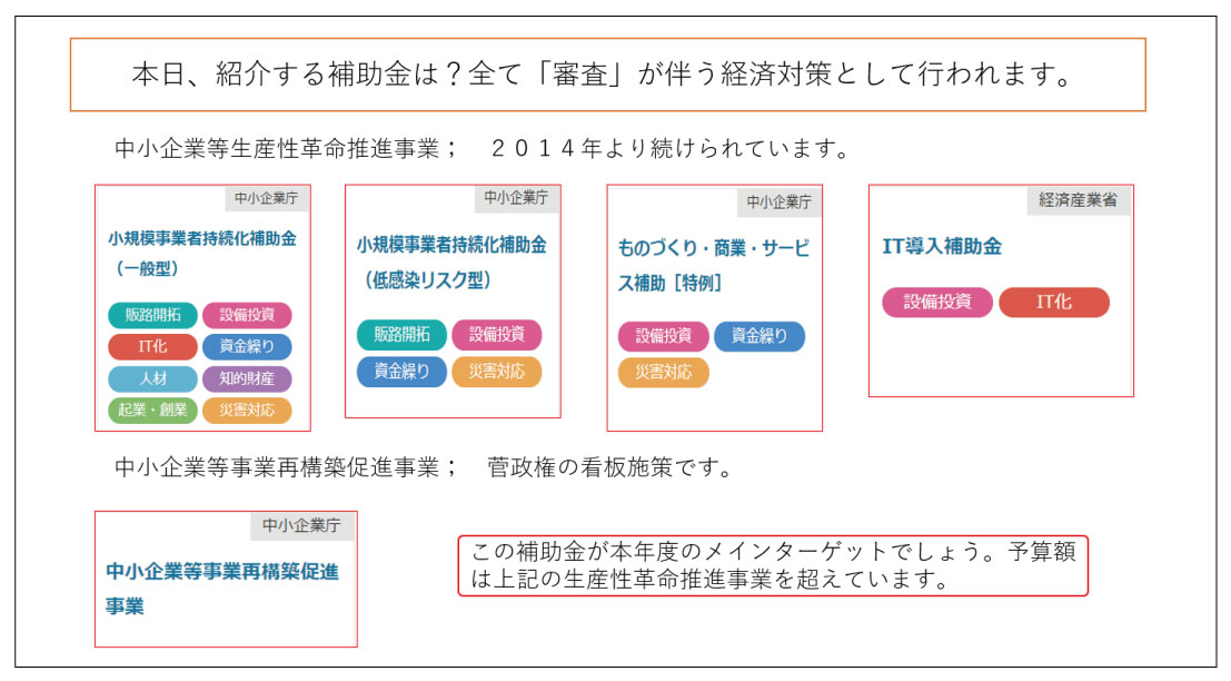 ・コロナ対策としての補助金も、通常の補助金も基本は同一であること