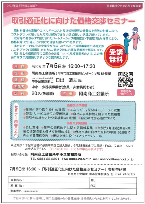 円安、物価高騰の話題に事欠かない日常です。中小企業施策での緊急課題として、価格転嫁が挙げられることが多いものです。具体的なセミナー内容のエントリ情報は下記のチラシを参照下さい。良ければ、ご参加下さい。