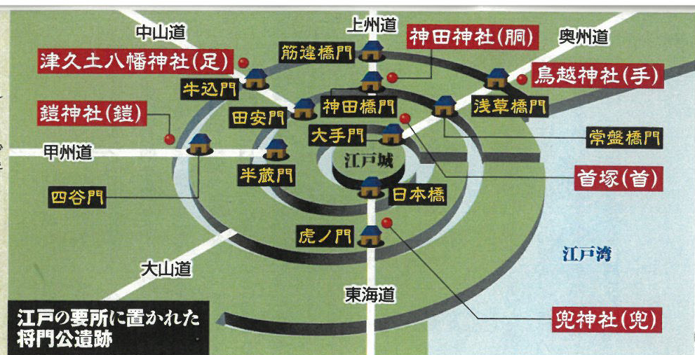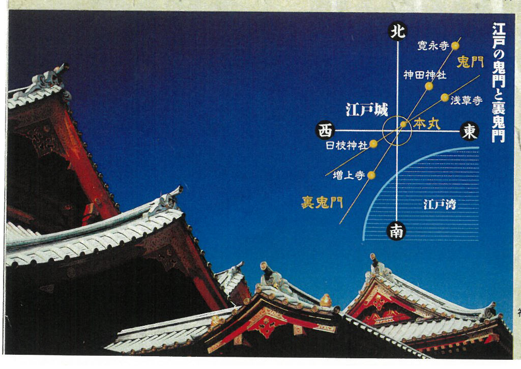 | 百万人都市江戸への第一歩 湿地だらけの荒れ地江戸城周辺に百万人大都市構想を徳川家康が構想(1590年)するに当たり頼りにしたのがそのブレーン南光坊天海だった。すでに家康の信頼を得て参謀として仕え江戸の町づくりをも担うことになっていた。関ケ原の戦いに勝利した家康が1603年に幕府を開くにあたって、関東の地相を天台密教の陰陽道の知識と西の伊豆から東の下総(千葉)に至る広大な土地の地層を調べ、結果的に江戸の位置こそが幕府の本拠地にふさわしい所と決める。この判断の基準は古代中国の陰陽五行説に基づく考えで、風水における大吉の地相を指すものだ。つまり東に青龍の宿る川が流れ、西に白虎の宿る道、南に朱雀の宿る水、北に玄武の宿る山がある土地は栄えるとされ、こうした考えから中国の長安はこれに基づいて選定され、日本の平安京(京都)しかり。陰陽道を納めた天界も家康の考えと同様に江戸も「四神相応」に叶っており幕府の本拠地として相応しいとする。江戸は東に平川(ひらかわ)、西に東海道、北に富士山、南に江戸湾があると解釈、実際のところ富士山は真北からかなりずれているが当時の江戸人たちもこれを北と見立てて半ば強引に理解したのかも知れない。江戸城のつくりを見ても大手門の向きなどもそれに合わせてずれた向きになっておるようで、意図的に富士山を北に見立てた手法だと思われ、江戸は「四神」によって守られた土地と考えたようだ。同じ様に地形から見ると江戸城本丸が置かれた本丸台地は江戸の中では特に地相がよく、上野、本郷、小石川、牛込、麹町、麻布、白金の七つの台地に囲まれ各台地それぞれの突端の延長線が本丸台地で交わり、陰陽道ではこうした地形の中心には周りの地の気が集まり文明が栄えるらしいのだ。次に進められた掘割にもある種秘密が潜む。堀は通常城を円で囲むように掘るが、江戸城の場合は螺旋状の「の」字型に進められ、城内部も渦郭式(かかくしき)という「の」の字型に掘り進め城を中心に時計回りで町が拡大され、江戸の人口増加は堀の開削と比例するかのように外縁が広がり成長している。この「の」字型の町割りの利点は更に、①敵が容易に城に近づけず、攻められにくい、②火災の類焼を防げる、③物資を船で内陸まで運搬できる、④開削でできた土砂を海岸の埋め立に利用できる等と、平城京(奈良)や平安京(京都)の条坊制を採らず、江戸の螺旋状に発展する機能に富んだ町づくりを行ったといえそうだ。家康の発想のもとに築城の名手藤堂高虎、思想・宗教的な影の設計者天海のノウハウによって寛永17(1640)年、家光時代の江戸城完成時には天海のみ存命であって50年近い江戸の都市計画初期から完成まで深く関わったというのである。 江戸の根幹部分を定めた後にもう一つ、周辺の要所に平安京に倣って「鬼門封じ」、陰陽道では北東は鬼門という邪気が入ってくる忌まわしい方角に当たり、その正反対に当たる南西は邪気の通り道「裏鬼門」の鬼門封じとして北東のライン上にある比叡山に延暦寺などの寺社を設け、現在の御所の塀で初めて確認したが北東隅だけは「猿が辻」という鬼門封じが設けられ平安京の護りとなっていると教わ知った。天海はこうした鬼門に対しての考え方を江戸に持ち込み住職を務めた上野の寛永寺(寺号を東叡山、東の比叡山の意)は平安京に倣って江戸の鬼門鎮護を担い堂塔伽藍も延暦寺に倣い、近江の琵琶湖に見立てて不忍池、琵琶湖の竹生島と同じく中之島に弁財天を祀るというように延暦寺を模している。そして1627年(寛永4)には寛永寺の隣に家康を祀った上野東照宮を建立、江戸の護りとする。 江戸の三大祭り 神田神社の神田祭、浅草寺の三社祭、日枝神社の山王祭は私にとっても言わば青春の情熱の炎そのものであり現実社会での夢のよう、八年余の貴重な在京体験などその後歩み続けた政治と自治の人生往来であったような気がしてならない。先の東京オリンピック(1939年)時に東京ど真ん中神田駿河台の中央大(法)に通学した一学生の私は、徳川家の菩提寺となった寛永寺と増上寺、それに神田神社を結ぶ直線と、浅草寺と日枝神社を結ぶ直線が交わる地点に、江戸城を天海が鬼門・裏鬼門封じの仕込みと位置付けたと理解できた。更に古きに学ぶと平安時代に関東一円を席巻し、新皇と称された平将門(たいらのまさかど)公の大きな力を用いて、940年に反逆者として京都の七条河原でさらし首となり、その首が今の東京都千代田区大手町1丁目の「首塚」に落ちて後世に津波や洪水の防災伝説を伝えている。近隣の「からだ」に由来する神田神社には、将門公の胴体を祀りここから江戸の町を守護する仕組みが、江戸の各所に存在する神社や塚のうち主要街道と「の」の字型の堀の交差点に鎮座しているように祀っている。首塚は奥州道へ繋がる大手門、胴を祀る神田神社は上州道の神田橋門、手を祀る鳥越神社は奥州道の浅草橋門、足を祀る津久戸八幡神社は中山道の