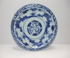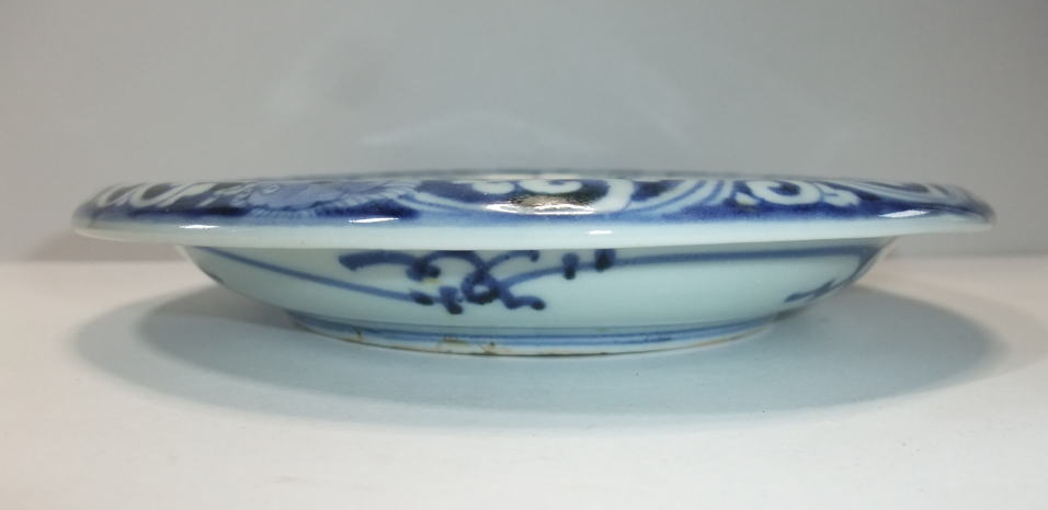 No.99111004 \50,000(1客) 染付唐草文4寸皿。享保。 見込みを白く抜いて、周りに花唐草系の唐草を描いています。 傷無し。4客有ります。 13.5cmW×3.0cmH |